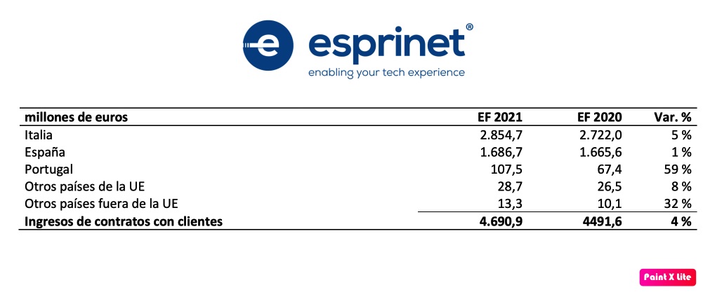 PRINCIPALES RESULTADOS DE ESPRINET SPA A 31 DE DICIEMBRE DE 2021
