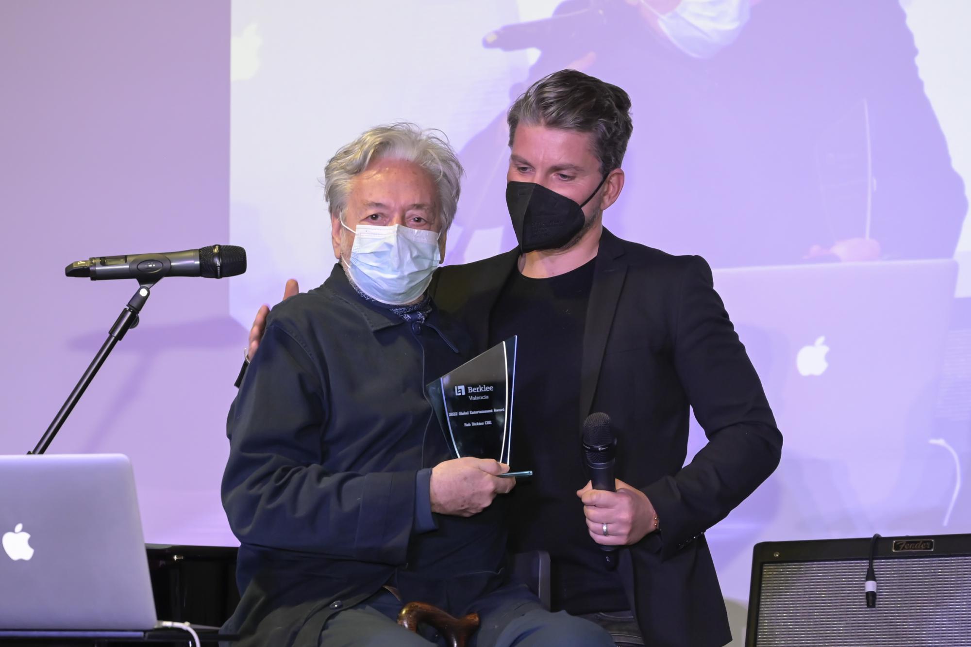 Durante la ceremonia de entrega, que tuvo lugar en el campus de Valencia, alumnos y exalumnos de Berklee rindieron homenaje a los logros personales y profesionales de Dickins, compartiendo testimonios y anécdotas. A continuación el galardonado ahondó en sus 40 años de carrera, habló de la evolución del rock y de la música a lo largo de la historia y compartió la importancia de la curiosidad, la investigación y el trabajo duro para triunfar: "todo es cuestión de trabajo duro, dedicación y amor", dijo.