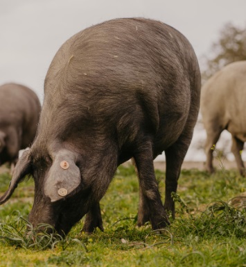 “Contamos con fincas propias donde nuestros cerdos pueden disfrutar de la naturaleza y lo que esta les ofrece. Esto repercute directamente sobre su estilo de vida, es decir, están en libertad, en movimiento, mientras que en las macrogranjas no disponen del mismo espacio para hacerlo, su alimentación también es un factor diferencial en donde unos se alimentan de los frutos, semillas, y plantas que encuentran, los cerdos de las macrogranjas solo se alimentan del pienso.