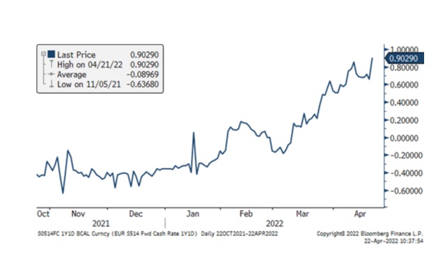 Pese a los datos positivos en general, las cifras no lograron apuntalar el EURUSD, dado que los precios del mercado para las subidas de tipos por parte del Banco Central Europeo se han vuelto sustancialmente más agresivos en las últimas sesiones de negociación, lo que limita el margen para nuevas subidas del euro basadas en indicadores de datos blandos. En estos momentos, los mercados de OIS en euros están valorando 95 puntos básicos de subidas de tipos de interés por parte del BCE para el próximo año, frente a los 60 puntos básicos de la semana pasada. El cambio se produjo cuando varios miembros del BCE hablaron ante los medios de comunicación y comentaron la posibilidad de una subida en julio.
