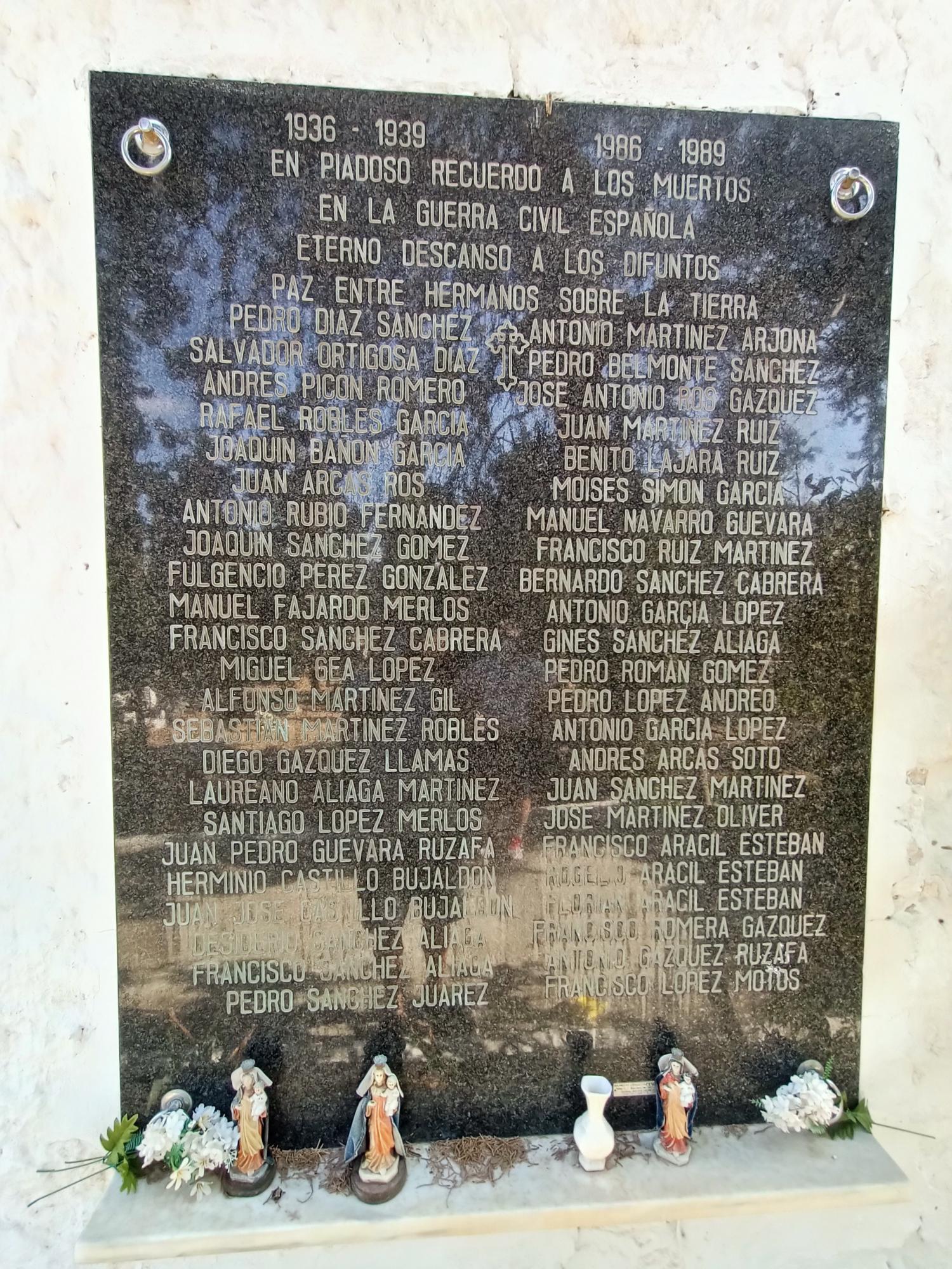 Una, la que llevó a cabo Emilio Cárdenas Díaz de Espada, sacerdote marianista, párroco de Vélez Blanco, provincia de Almería, que entre 1986 y 1989 promovió la colocación, en el cementerio, de una lápida cuyo epitafio dice: “EN PIADOSO RECUERDO A LOS MUERTOS EN LA GUERRA CIVIL ESPAÑOLA. ETERNO DESCANSO A LOS DIFUNTOS. PAZ ENTRE LOS HERMANOS EN LA TIERRA”. Debajo aparece una lista de 46 nombres de personas del pueblo, de ambos bandos, que murieron en la guerra civil.