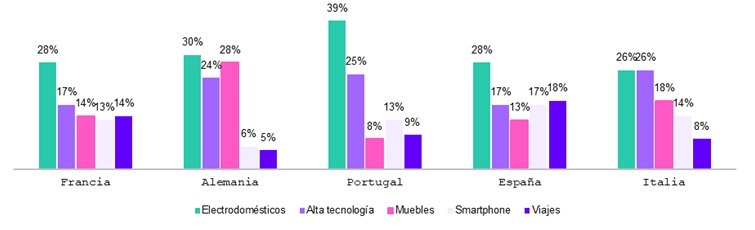 1 de cada 3 consumidores lo utiliza (34% en Francia y Alemania, 26% en Italia, 41% en España, 48% en Portugal)