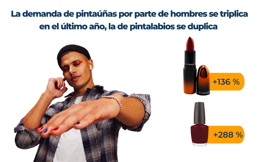 Además, los datos de idealo señalan que las búsquedas de pintalabios por parte de los hombres se han duplicado en el último año. En el caso de los pintaúñas, este producto se está popularizando todavía más entre los consumidores masculinos, con futbolistas como el bético Borja Iglesias luciendo esmalte de uñas en sus redes sociales. En el caso de este producto, el incremento es de un 288 % con respecto a septiembre del año pasado.