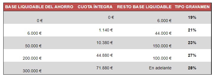 La nueva escala de tipos para las rentas y ganancias del ahorro: