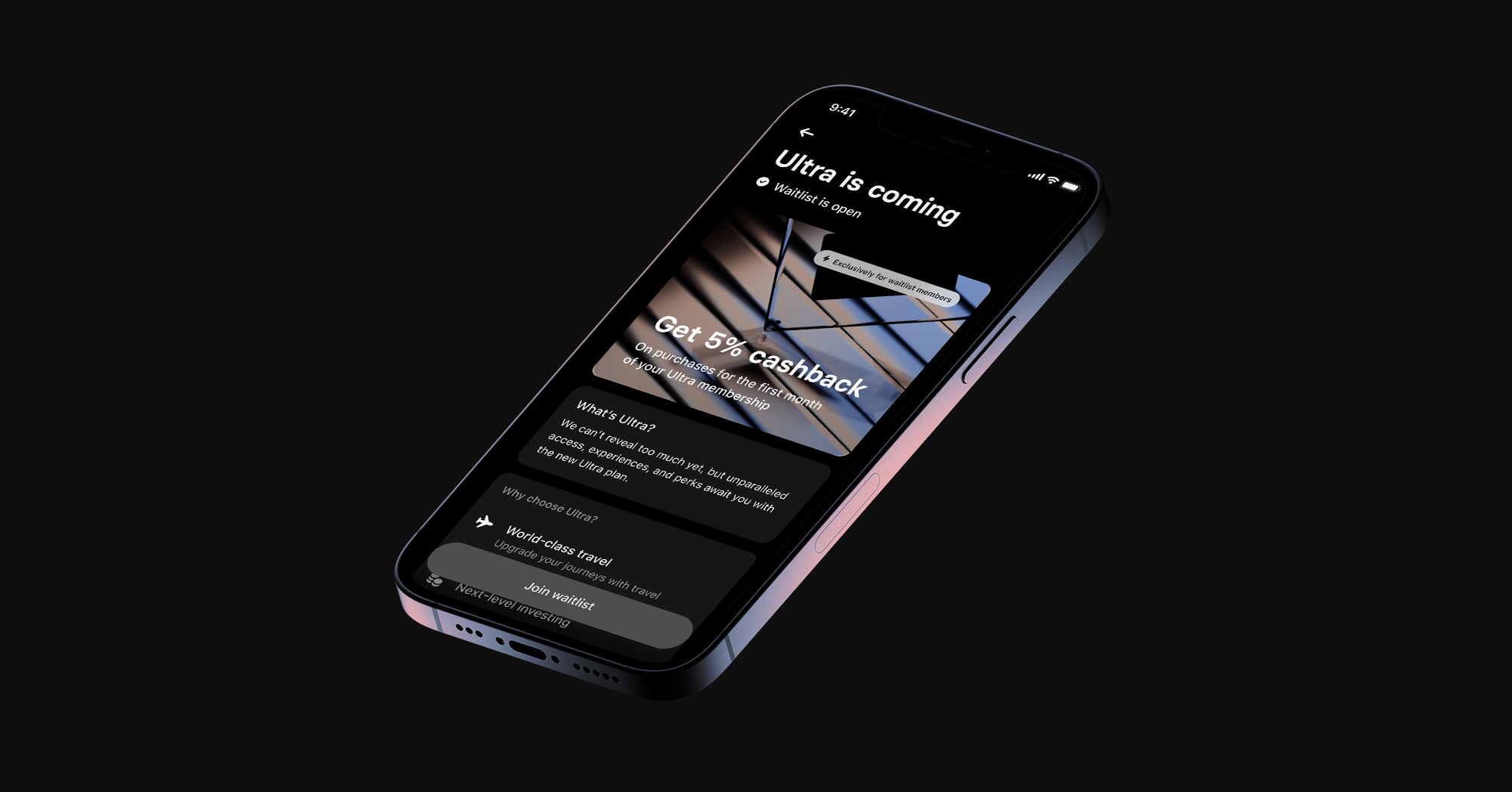 El nuevo plan de gama alta, con ventajas excepcionales, llegará en la primavera de 2023. Los clientes, tanto nuevos como existentes, pueden unirse a la lista de espera para desbloquear el 5% de devolución en las compras realizadas en su primer mes con Ultra.