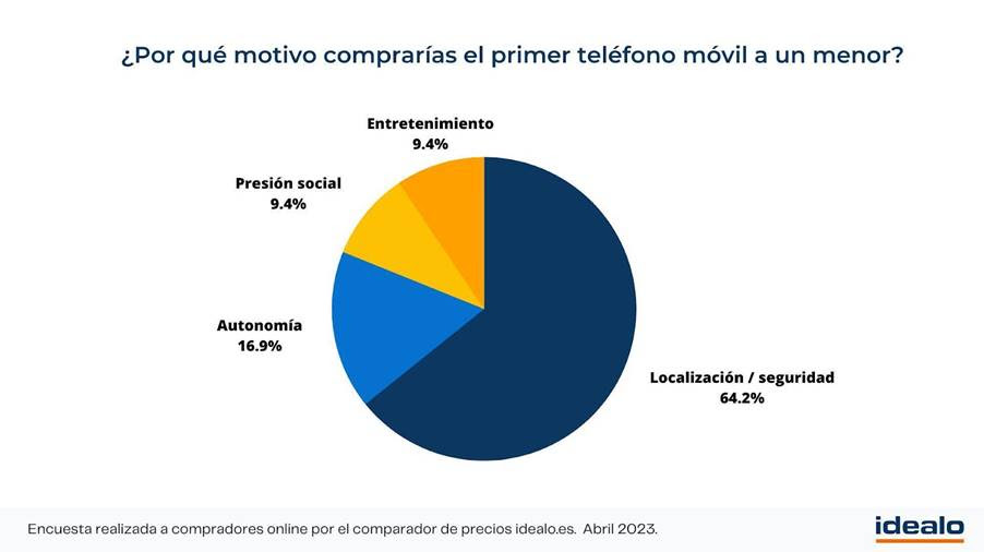 Según un Informe de Unicef, la media de acceso al primer móvil en España es a los 11 años, y partiendo de los datos de idealo, otros motivos de la compra de un teléfono móvil para sus hijos esla presión social (17 %), y el entretenimiento (25 %) en el caso de los menores de 10 años.