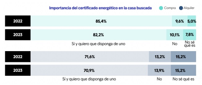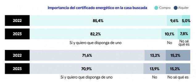 • En el caso del alquiler, el 70,9% busca una vivienda con certificado energético, una cifra 10 puntos menor que quienes buscan comprar