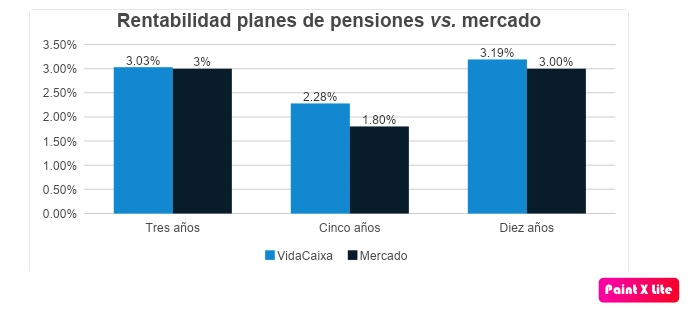 Los planes de pensiones de VidaCaixa han registrado rentabilidades medias anuales superiores a las del mercado en todos los periodos de referencia: 3,03% a 3 años frente al 3% del mercado; 2,28% a cinco años frente al 1,8% del mercado, y 3,19% a 10 años frente al 3% del mercado.
