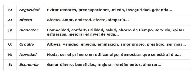 SABONE es una conocida fórmula que clasifica los móviles de compra con la ventaja añadida de poder ser recordados con facilidad por su regla nemotécnica. Todos los clientes, incluidos los compradores profesionales, compran por uno o varios de estos móviles de elección.