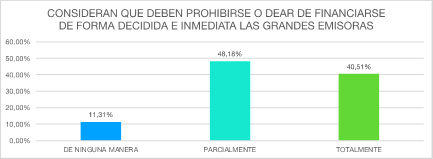 Con relación a esto, el informe señala que el 45% de los encuestados se muestra en contra de descarbonizar la economía al menos hasta que las energías renovables sean 100% eficientes, mientras que el 29% sí se muestra a favor de prohibir la generación energética con carbón o gas.