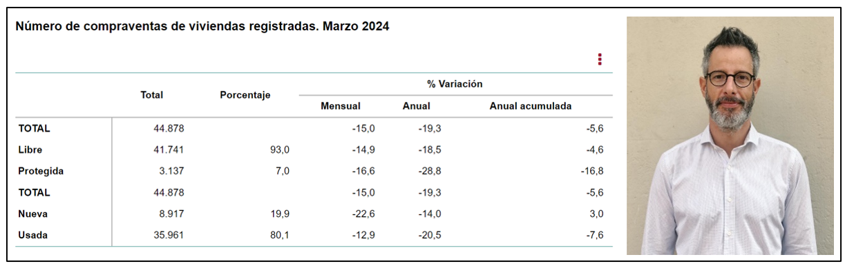 Si bien es cierto que se trata de un descenso importante que cambia la tendencia que venía acumulándose a lo largo de los últimos meses, el “factor Semana Santa” explica parte de dicha caída interanual. Mientras en los últimos años el periodo festivo, donde suelen registrarse menos operaciones, ha sido en abril, este año se ha celebrado en marzo. Por ello, el mes que viene probablemente veamos un aumento interanual significativo. Si analizamos lo que ha sucedido en un año natural vemos que el dato es inferior a 580.000, hecho que no se producía desde enero del 2022”.