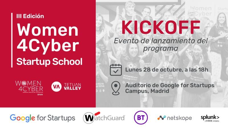 En esta ocasión, el programa Women4Cyber Startup School cuenta con el respaldo de importantes compañías como Google for Startups, WatchGuard Technologies, BT, Netskope y Splunk, como parte de su afán por impulsar y ayudar a visibilizar el talento femenino en ciberseguridad, emprendimiento e innovación.