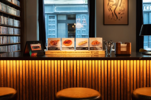 La nueva barra tiene una decoración vintage&musical, con vinilos recordando las épocas doradas de la música y una carta con mucho ritmo en forma de cassette ochentero con hits musicales para las cartas de comidas y bebidas como: amores de barra, litros de alcohol corren por mis venas mujer o pongamos que hablo de Madrid.