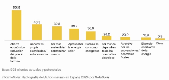 De hecho, el ahorro económico (60%) con la reducción del precio de la factura, es el principal factor que interviene en la decisión de contratación de sistemas de energía sostenible para el hogar, como son las placas solares. En un segundo escalón se sitúan motivos relacionados con la sostenibilidad (ser más sostenible y aprovechar la energía solar), y con la independencia (generar mi propia electricidad). Otros aspectos como el precio cambiante de la energía, y la disponibilidad de subvenciones o beneficios fiscales no resultan tan determinantes a la hora de tomar la decisión.