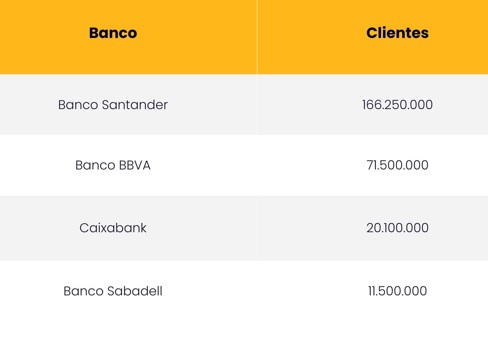 El caso de Banco Sabadell es peculiar porque si bien la cifra ronda los 11,5 millones de clientes a nivel mundial, no ha brindado datos oficiales del número de clientes en España. Similar situación ocurre con Bankinter que tampoco ha proporcionado números oficiales.