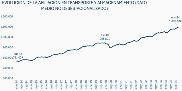 La afiliación en el sector de transporte y almacenamiento ha crecido un 44,2 % en 10 años