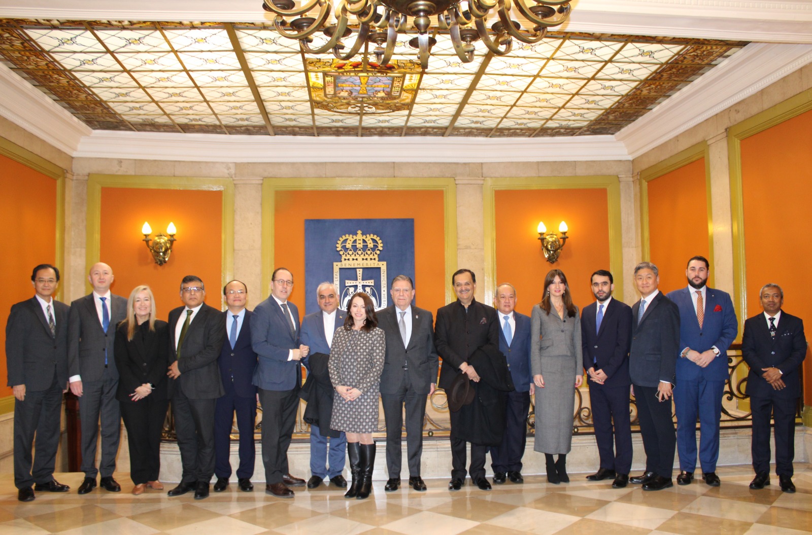 El viernes 31 de enero, los Embajadores, acompañados por el Consejero de RR.II. del Real Cuerpo de la Nobleza, D. Alfredo Leonard, realizaron una visita de cortesía al Alcalde de Oviedo, D. Alfredo Canteli, en la magnífica sede del Ayuntamiento.
