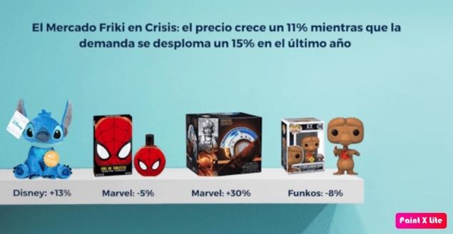 Otro buque insignia del mundo de los Young Adults son los Funko Pops, que experimentaron un ‘boom’ en la década de los 2010. Con todo, su demanda ha caído en el último año un 19% en nuestro país, aunque su precios también han sufrido una caída del 8%.