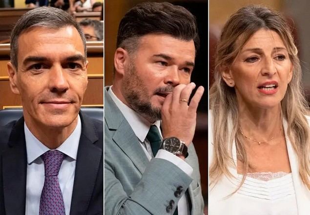 La escasa dignidad del muro frankenstein exige contrapartidas a cambio de la omertà con el ruego a Pedro Sánchez de no tener que elegir entre un gobierno de la derecha o la corrupción de su partido (Compromís), continuar con la estrategia del ¡y tú más! u obligarle a que decida la gente (ERC), someterse a una cuestión de confianza (PNV y CC), y hasta denunciar el "cortafuegos" entre los corruptos y el partido en el poder (Podemos). La dirigente de esta última formación advierte de que las fotos de Koldo, Ábalos y Cerdán perseguirán a los socialistas “toda la vida”, mientras la vicepresidenta y líder de Sumar une su aciago destino al PSOE para salvar la legislatura con una defensa entusiasta para seguir gobernando juntos.