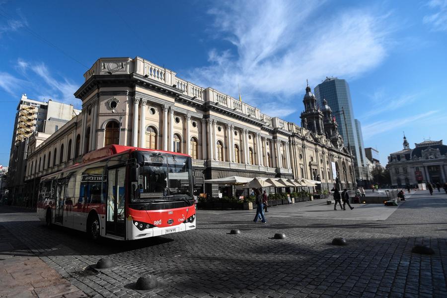 Un autobús eléctrico chino circula por una calle, en Santiago, capital de Chile, el 29 de abril de 2025. (Xinhua/Jorge Villegas)