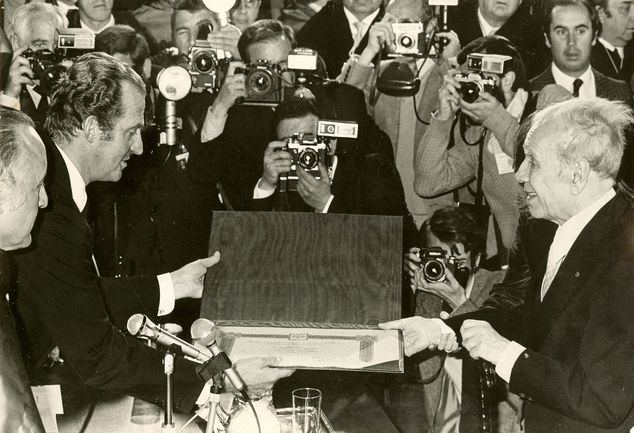 Estoy seguro de que gran parte de la obra de Borges tiene mucho que ver con Madrid, que, como a muchos otros escritores, lo maravilló por completo en su juventud y marcó su magnífica y fulgurante carrera literaria, que tuvo su punto culminante con la obtención del Premio Cervantes en abril de 1980. En el paraninfo de la Universidad de Alcalá afirmó: “Yo ahora me siento más que justificado; me llega este premio, que lleva el nombre, el máximo nombre de Miguel de Cervantes, y recuerdo la primera vez que leí el Quijote, allá por los años 1908 o 1907”.