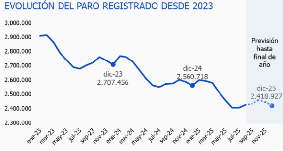 Los datos de agosto y la evolución del mercado laboral en España a lo largo de los anteriores meses permiten, siempre con la debida prudencia, vaticinar el comportamiento del empleo de cara al último tramo del año. A grandes rasgos, la línea del último cuatrimestre de 2025 vendría definida por la continuidad de la tendencia positiva, si bien, como ya se viene percibiendo en los últimos registros, de una manera más ralentizada.