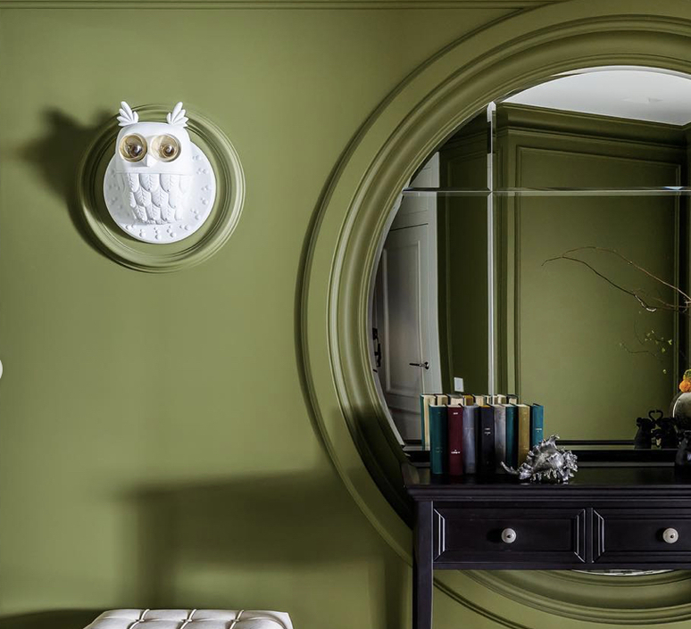 El aplique mural Ti Vedo de Karman, con su icónica silueta de búho blanco que emerge de la pared, juega con el humor y la extrañeza. Una pieza entre lo escultórico y lo onírico, que parece observar la estancia en silencio, proyectando una luz cálida y sugerente.