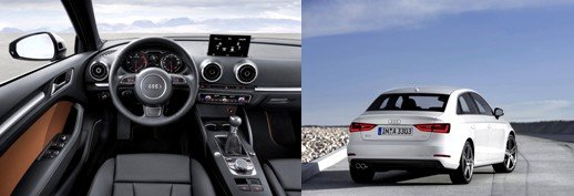 Su diseño es una fusión entre el clásico concepto de berlina de tres volúmenes y la filosofía coupé. Con 2,64 de batalla, el cuatro puertas tiene una longitud total de 4,46 metros. Las superficies laterales están visiblemente arqueadas, destacando los prominentes pasos de rueda. Con 1,80 metros, el A3 Sedan es 11mm más ancho que el A3 Sportback y una altura 9 mm menor.