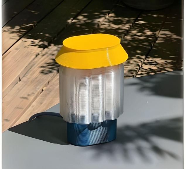 En la misma línea cromática, la lámpara de mesa Nour, diseñada por Warren & Laetitia, apuesta por una combinación refinada de azul petróleo, blanco y amarillo, creando un juego visual delicado y contemporáneo. Su formato pequeño y su estética gráfica la hacen ideal para escritorios, mesillas o estanterías, donde el color se convierte en un acento sutil pero expresivo.