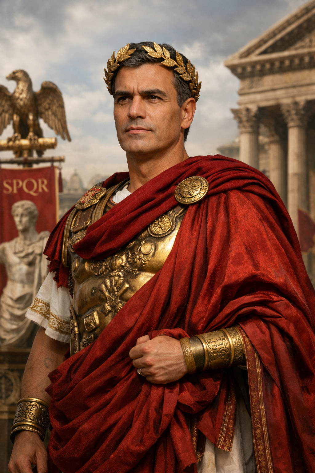 Ítem más, Pedro Sánchez en hora de audiencia máxima, en el telediario de las tres de la tarde de hoy, acaba de aventurar el fin del tratado de la Alianza Atlántica del norte (OTAN) si Trump hace lo que dice en Groenlandia. Sánchez no es, precisamente, alguien en quien confiar cuando predice el futuro. También que sus opiniones, mutables en tiempo y forma según le convengan, cada vez importan menos en la UE, en el resto del mundo y entre todos nosotros. Por eso, con el episodio del pito de Julio Iglesias amortizado o a punto de serlo, puede ser el momento y ocasión para sugerir una noticia transaccional que evite roces con Trump y haga posible la concordia que, hasta el desnudo extemporáneo del socialista Sánchez, ha habido: Una capa de forma triangular sujeta al hombro por medio de un broche metálico, caída por la espalda hasta las pantorrillas, enrollada en el brazo izquierdo o suelta. Puede ser motivo de chanza o guasa. Incluso, allá gustos, algo bobo, estúpido o mono, según quien la lleve. Pedro Sánchez, por ahora, no es un emperador romano vestido de color purpura, escarlata o carmesí; ni va a serlo. Es, todavía, el presidente del gobierno de coalición que tiene y usa el poder desde el palacio de La Moncloa. Por arte de birlibirloque y por ser menos nocivo que inútil también puede aparecer como paludamento, un socialista carmesí.