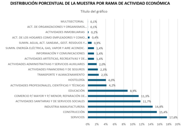 Dado el peso mayoritario del sector primario en la muestra, el estudio opta por presentar de forma diferenciada la distribución sectorial del resto de actividades económicas. Esta aproximación metodológica permite facilitar un análisis más preciso y comparable de los sectores no primarios y perfilar con mayor detalle la estructura productiva de la Economía Social en los ámbitos de los servicios, la industria y la construcción.