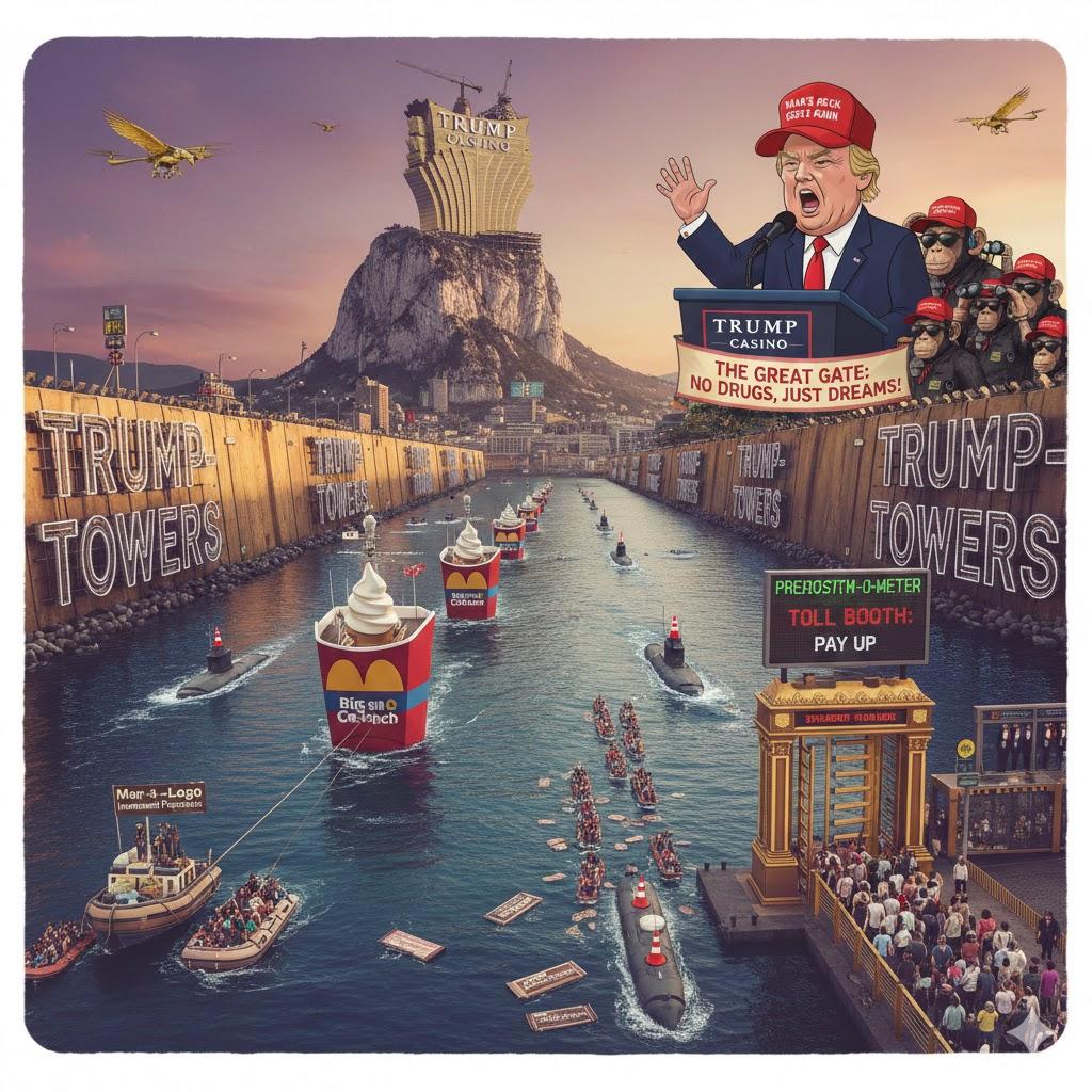 Si este delirio mediterráneo llegara a puerto, el Estrecho dejaría de ser un punto caliente de la geopolítica para ser el mayor peaje del mundo. La verdad es que, entre risas y espanto, uno no puede evitar imaginar a Trump inaugurando un casino en la cima del Peñón, mientras los submarinos nucleares hacen cola porque no han pagado la tasa de atraque.