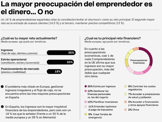Sin embargo, el principal desafío para los emprendedores españoles no es estrictamente financiero. El 16 % señala el agotamiento y la dificultad para conciliar como su mayor preocupación, seguida de la captación de nuevos clientes (14 %) y la competitividad en precios y propuestas de valor (13 %). Al mismo tiempo, la falta de soluciones bancarias adaptadas se sitúa entre los principales obstáculos (10 %), una cifra superior a la media europea. Esta realidad evidencia una clara carencia por parte de las entidades tradicionales frente a las necesidades reales del emprendimiento, y pone en manifiesto la demanda de herramientas financieras digitales capaces de simplificar la gestión diaria, reducir fricciones operativas y ofrecer un mayor control sobre los recursos del negocio.