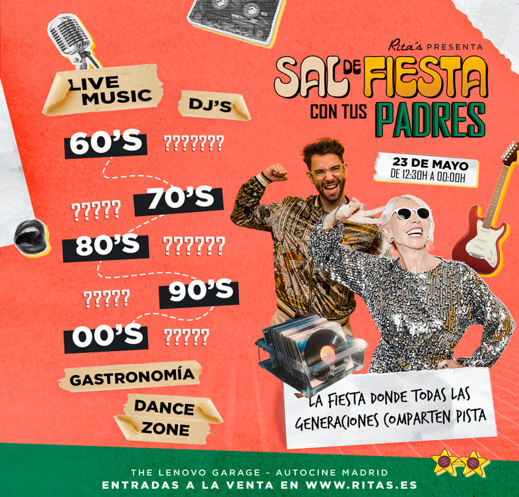 En ese contexto surge “Sal de fiesta con tus padres”, un nuevo concepto de ocio que propone algo hasta ahora poco habitual en España: un evento diseñado para que padres e hijos compartan pista de baile, repertorio musical y experiencia sin segmentaciones ni etiquetas. La propuesta llegará a Madrid el próximo 23 de mayo y plantea un recorrido musical capaz de conectar décadas, recuerdos y públicos distintos dentro de una misma noche.