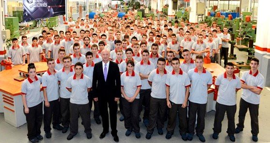 El curso 2013-2014 será el segundo año académico impartido con el sistema de formación dual basado en el modelo alemán, que combina formación teórica y práctica en la escuela con trabajo en las plantas de producción de la compañía. Con el nuevo plan docente, que suma 4.625 horas a lo largo de tres cursos, los estudiantes firman un contrato laboral de formación y aprendizaje que les permite cotizar a la Seguridad Social así como percibir una remuneración mensual en base a las prácticas que realizan en la empresa.