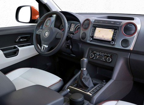 La capacidad de carga es de 900 kilos y puede arrastrar un remolque de más de 3.000 toneladas, prácticamente tiene la capacidad de un vehículo industrial, aunque con un toque deportivo. En el interior hay muchas cosas que destacar, asientos deportivos de cuero bicolor, con costuras en rojo que también se mantienen en distintas partes de la decoración interior. En el salpicadero se integran además tres instrumentos que nos indican el ángulo de ascenso y de inclinación del vehículo.