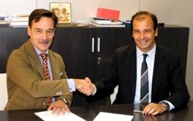 | Horacio González Alemán y Sergio Sala Puig tras la firma del convenio. |