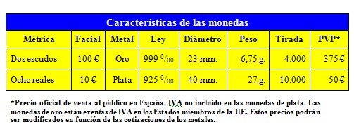 • Precio oficial de venta al público en España. IVA no incluido en las monedas de plata. Las monedas de oro están exentas de IVA en los Estados miembros de la UE. Estos precios podrán ser modificados en función de las cotizaciones de los metales. Las monedas se pueden adquirir en estuche individual o las dos juntas en forma de colección.