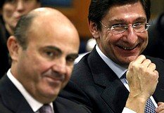 | | De Guindos y Goirgolzarri celebraron los rescates bancarios, aunque aún tendrán que soportar muchos "palos en las ruedas" en el camino de la depuración de Bankia. |