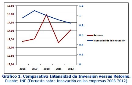 En épocas económicamente complejas como en la actual, donde la incertidumbre de los mercados es tan alta, resulta de vital importancia realizar una buena valoración de estos flujos de caja. Si analizamos las inversiones en Innovación, Investigación y Desarrollo de las empresas españolas de los últimos 5 años, y las comparamos con el retorno que han obtenido, nos encontramos que el retorno no tiene relación directa con el volumen de inversión en Innovación, tal como puede apreciarse en la gráfica 1. Influyen muchos otros condicionantes, como el mercado o los riesgos que presenta un proyecto. La única forma de mejorar el retorno de una inversión es a través de una mejora en la validación y cuantificación de los riesgos y gastos asociados a cada proyecto.