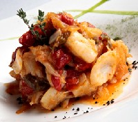 • Bacalao ahumado con tomate Kumato y tapenade de oliva