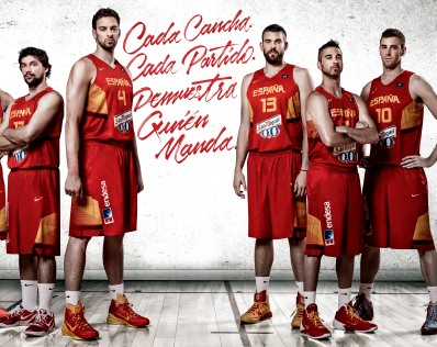 La intensa cultura de España inspira el diseño de las nuevas equipaciones. Los colores de la primera equipación (rojo "challenge" y oro "midas") son la viva imagen de este soleado país. El sol fue la principal fuente de inspiración del proceso de diseño, desde los amarillos brillantes del amanecer hasta los rojos intensos del atardecer. La segunda equipación será de color blanco. Ambas equipaciones presentan unas tonalidades rojas y amarillas combinadas en un estampado dinámico de 26 grados, que empieza en la costura lateral de la camiseta y de los pantalones, y se va desvaneciendo hacia la parte posterior. El estampado dinámico representa una característica concreta del baloncesto, ya que se basa en los 1000 cambios de dirección, o "cortes", que un jugador puede realizar en el transcurso de un partido.