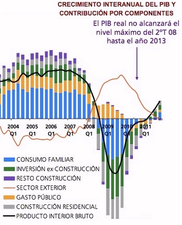 La casi veintena de servicios de estudios y análisis nacionales que consulta la Fundación de las Cajas de Ahorros (Funcas) para su panel de expertos se muestran ahora más moderados en su optimismo respecto a la recuperación económica en España. Así, aunque han elevado una décima su estimación de crecimiento del PIB -hasta el 1,3% este 2014 y el 2% en 2015-, hace unas pocas semanas se esperaba que su actualización reflejara un alza mayor. Observan, eso sí, una estabilidad en la mejora de la economía, con un PIB trimestral que crecerá a ritmo del 0,4% hasta la primavera de 2015. Mientras consumo familia, inversiones o construcción han decrecido enormemente desde 2008, el gasto público no se ha visto seriamente rebajado, en contra de lo que asegura el Gobierno, aunque hay quien piensa que incluso debería aumentar vía inversiones públicas que activen ciertos sectores que garanticen un crecimiento sostenido para los próximos 5 años.
