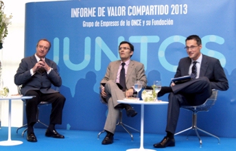 El Grupo de Empresas de la ONCE y su Fundación ha presentado hoy, miércoles 17 de septiembre, su Informe de Valor Compartido 2013, el primero realizado de forma conjunta por todas sus empresas y en el que se expone la apuesta que el Grupo realiza por la discapacidad, como parte de su estrategia empresarial y distintivo de su política de RSC. En el acto de presentación del informe, celebrado en el Hotel Confortel Pío XII de Madrid, participaron: Alberto Durán, presidente del Grupo de Empresas de la ONCE y su Fundación; Fernando Riaño, director corporativo de RSC, Comunicación y Marketing del Grupo; y José Luis Fernández, director de la Cátedra de Ética Económica y Empresarial de la Universidad Pontificia de Comillas. 2013 fue un año record en las cifras de creación de empleo. El Grupo de empresas incrementó su plantilla en casi 1.200 trabajadores con distintas discapacidades.