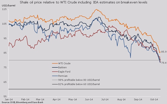 La producción de crudo de esquisto desde las tres mayores zonas de producción en EE.UU. negociaron todos con un descuento frente al crudo WTI de entre 4 y 6,5 dólares por barril. Las últimas ventas de ayer dieron lugar a que el precio cayera por debajo de los 80 dólares por barril y el impacto sobre algunas de las mayores compañías.