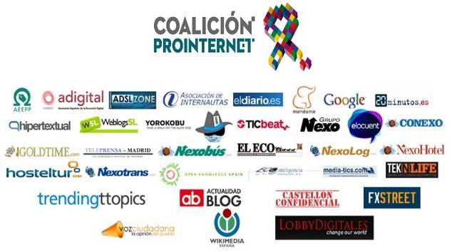 Entre las entidades fundadoras de Coalición ProInternet se encuentran la asociación de editores de prensa AEEPP, la Asociación Española de Economía Digital (ADigital), la Asociación de Internautas, Google, Menéame, WeblogsSL, Hipertextual, Elocuent o Adslzone, los medios 20minutos.es y eldiario.es así como profesionales de la comunicación del sector digital a título individual.
