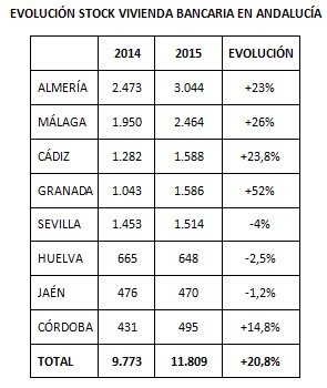 Los precios de la vivienda bancaria en Andalucía varían mucho según la provincia, siendo Almería la más económica (la media de sus inmuebles están alrededor de los 80.000 euros), también la que más número de pisos concentra. En el lado opuesto, el de las provincias más caras, está Sevilla con una media de coste de 121.648 euros, seguida de cerca de Granada con 120.456€ de media por inmueble. Málaga, a pesar de ser la segunda provincia con más stock bancario, 2.464 inmuebles en total y un 26% más respecto a 2014, mantiene un precio regular de 113.900 euros de media por vivienda.