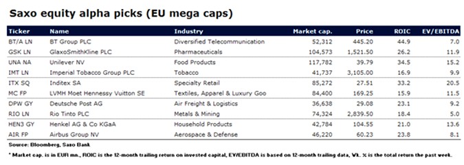 La selección de acciones alpha de Saxo (acciones de gran capitalización de la UE)