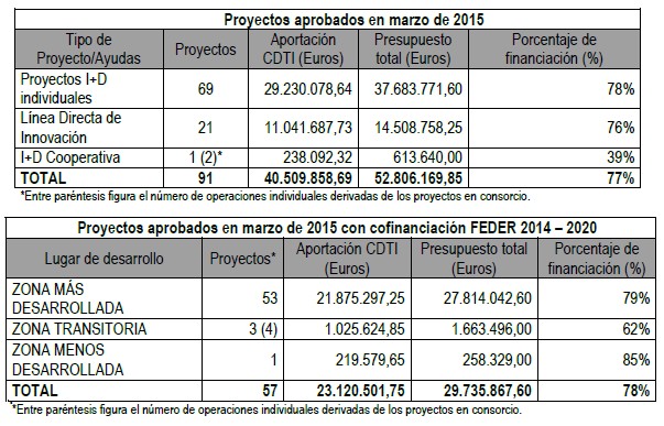 El Consejo de Administración del Centro para el Desarrollo Tecnológico Industrial (CDTI) ha aprobado 91 nuevos proyectos de I+D+i con un presupuesto total de casi 53 millones de euros. El CDTI aportará más de 40 millones de euros impulsando, de esta manera, la I+D+i empresarial. De las iniciativas aprobadas, 70 son proyectos de I+D de los cuales, 69 de ellos lo desarrollan empresas de forma individual y 1 proyecto se realizará en consorcio en el que participan dos compañías. Finalmente, 21 de los proyectos aprobados pertenecen a la Línea Directa de Innovación. En el desarrollo de estos proyectos participan 91 empresas de las cuales el 70,3% son pymes y, de éstas, el 39% pertenece a sectores de media y alta tecnología. Del total de las compañías implicadas, 42 de ellas, es decir, un 46%, recibe, por primera vez, financiación del CDTI.