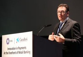 Un centenar de entidades financieras se reúnen durante hoy y mañana en Barcelona para participar en el congreso “Innovation in Payments”, impulsado para CaixaBank y el World Savings and Retail Banking Institute (WSBI) para analizar el futuro de los medios de pago a nivel global. WSBI, con sede en Bruselas, es la organización que agrupa a más de 6.000 bancos minoristas de todo el mundo. Isidro Fainé, presidente de CaixaBank, es vicepresidente de la institución. Es la primera vez que esta entidad escoge Barcelona como sede de un evento dirigido a sus miembros en todo el mundo. En la conferencia inaugural de “Innovation in Payments”, Antoni Massanell, vicepresidente de CaixaBank, ha defendido que la banca debe rediseñar totalmente su modelo de negocio para adaptarse a lo que ha descrito como “una nueva era”. “El ‘business as usual’ se ha acabado. En pocos años, muchas de las antiguas fuentes de ingresos habrán desaparecido, así que debemos empezar la transición hacia el nuevo mundo y desarrollar servicios innovadores que progresivamente se conviertan en nuevas fuentes de ingresos”, ha afirmado Antoni Massanell. Según Chris de Noose, director general de WSBI, “si los bancos retail quieren seguir siendo relevantes, tienen que invertir en innovación.”